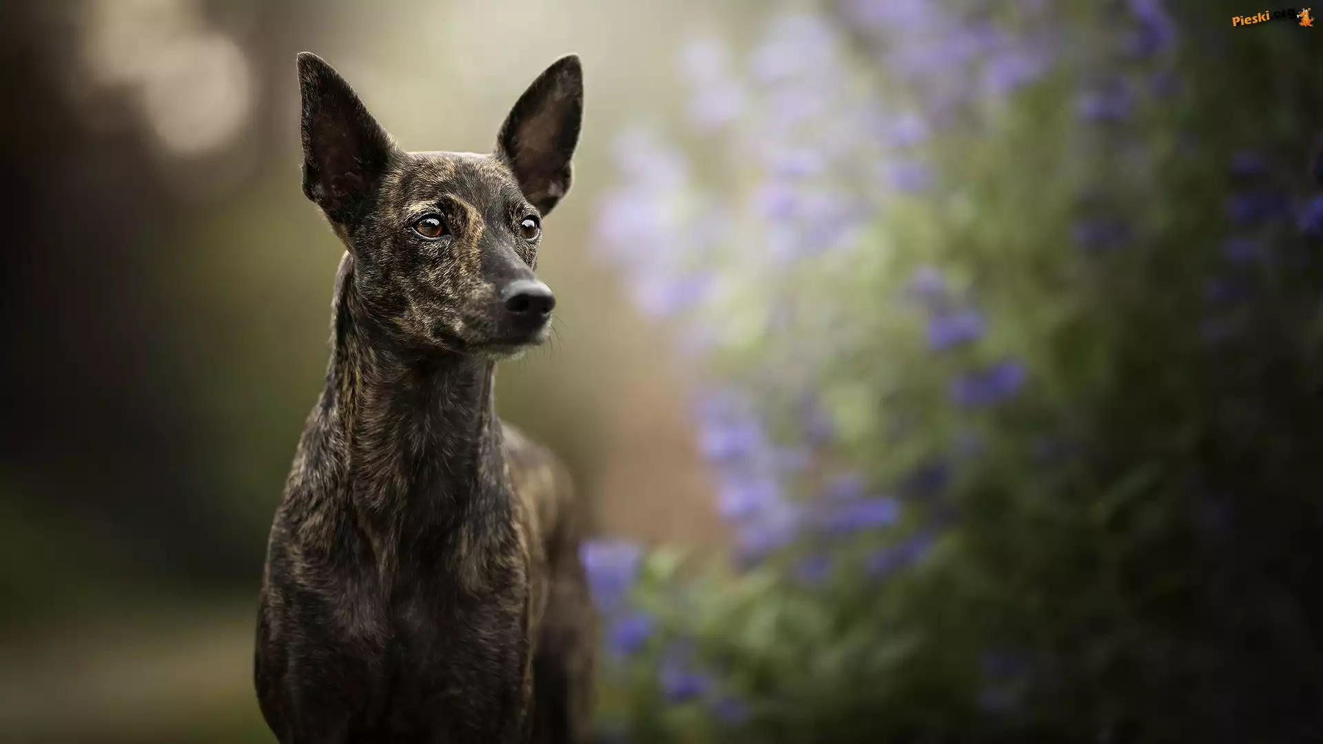 Whippet, różowe, ubranko Mordka, Pies, Whippet, Liście Whippet Whippet, zielone, liście