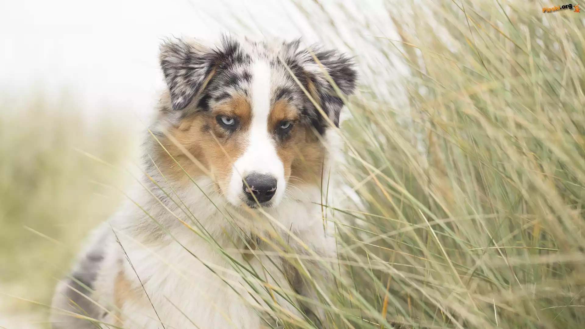 Wysoka, Owczarek australijski, Pies, Mordka, Trawa, Pieski
