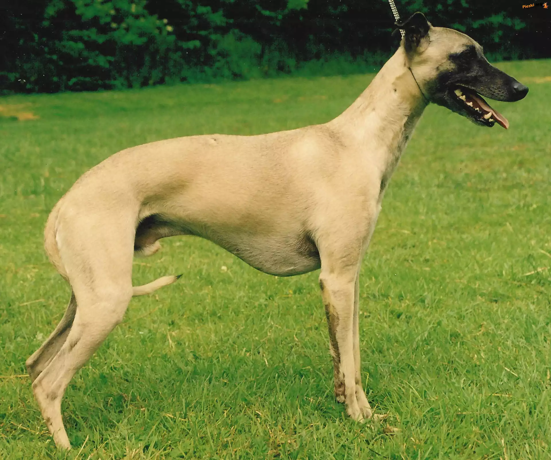 Whippet, zielona, trawa Pies, Whippet, Mordka